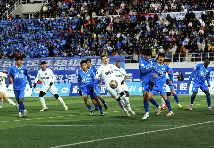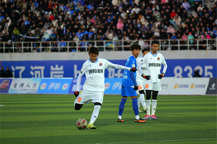 2025年伊利内蒙古自治区足球超级联赛决赛首回合比赛正在进行。经过激烈角逐,呼和浩特队0:0战平通辽队。