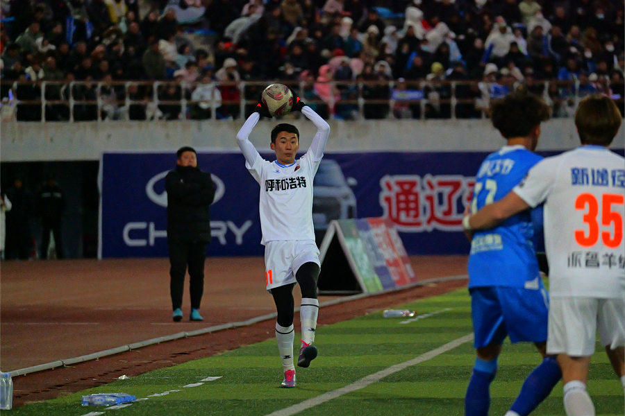 比赛伊始,两队直接开启高速对抗模式,攻防节奏紧凑,转换效率拉满,为现场4万余观众呈现了开局即高潮的对决。双方轮番发起高强度攻势,给对方球门制造实质性威胁,呼和浩特队小组赛表现亮眼的16号孟克特尔文聚集中路攻坚,31号外援马库斯则镇守左路策应,左路突破加中路冲击向通辽队禁区施压,然而未能将攻势转化为进球,两队以0:0的比分进入中场休息。