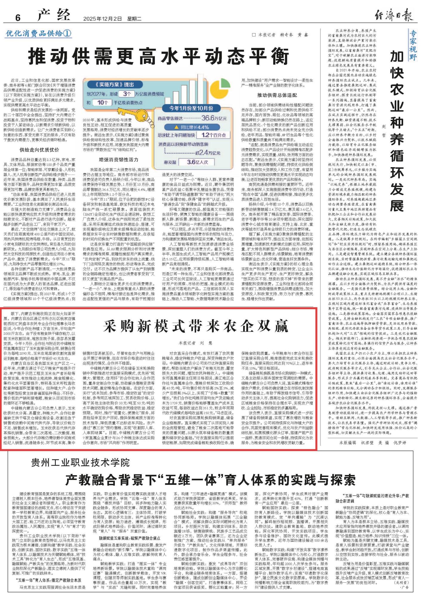 2025年12月2日,《经济日报》第6版刊发题为《采购新模式带来农企双赢》的文章,报道了近年来,内蒙古通过千亿斤粮食产能提升行动、单产提升示范工程及玉米生产者补贴等政策实施,有效推动土地流转,粮食规模化、集约化水平显著提升,特别是积极推进对农直接采购模式,进一步拓展了储备购销渠道,实现了惠农增收与粮食安全双提升。