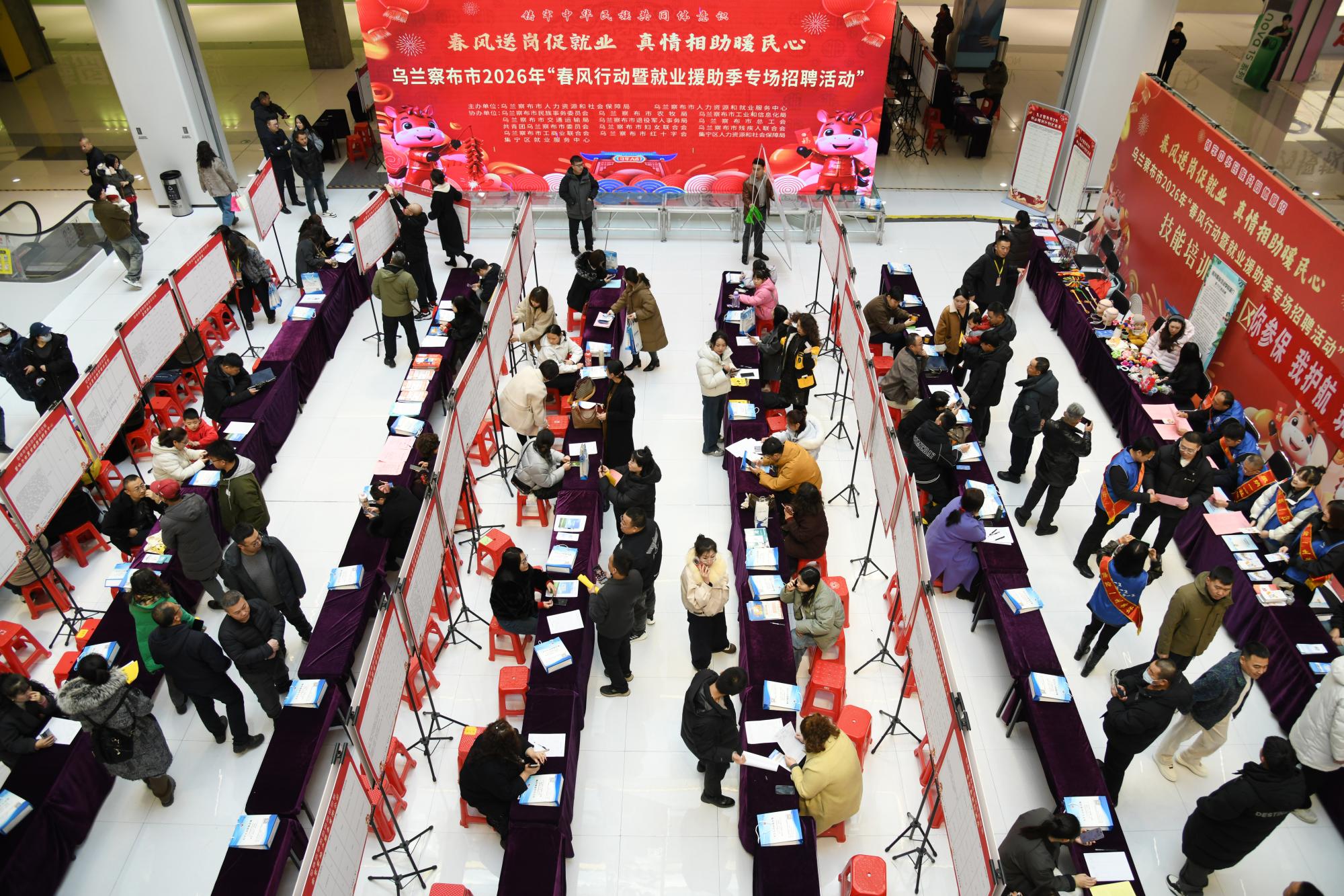 2月23日,以“春风送岗促就业 真情相助暖民心”为主题的乌兰察布市2026年春风行动暨就业援助季专场招聘活动在集宁区维多利摩尔城举行。