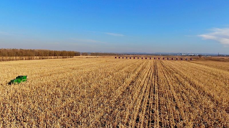 △2022年10月28日,在四平市梨树县国家百万亩绿色食品原料(玉米)标准化生产基地核心示范区,农民驾驶农机进行秋收作业。