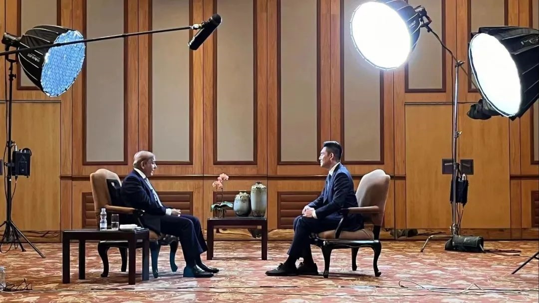 △总台主持人王冠专访巴基斯坦总理夏巴兹·谢里夫