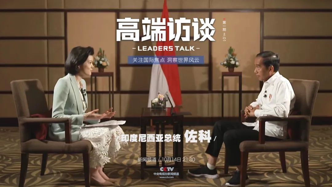 △总台主持人邹韵采访印度尼西亚总统佐科
