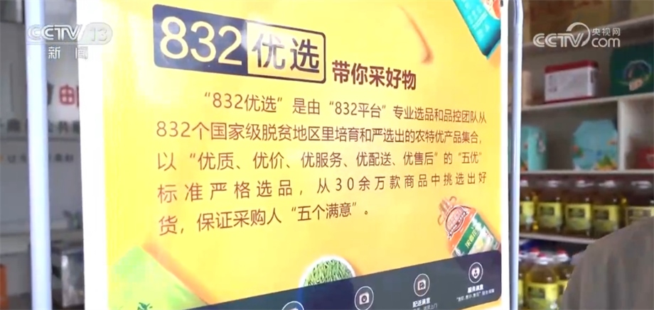 总台央视记者 蒋树林:这里是永顺当地的一个农村电商公共服务中心,很多“土特产”都通过“832平台”走出大山,摆上货架的产品都要严格符合五优标准,即优质、优价、优服务,特别是优配送、优售后。