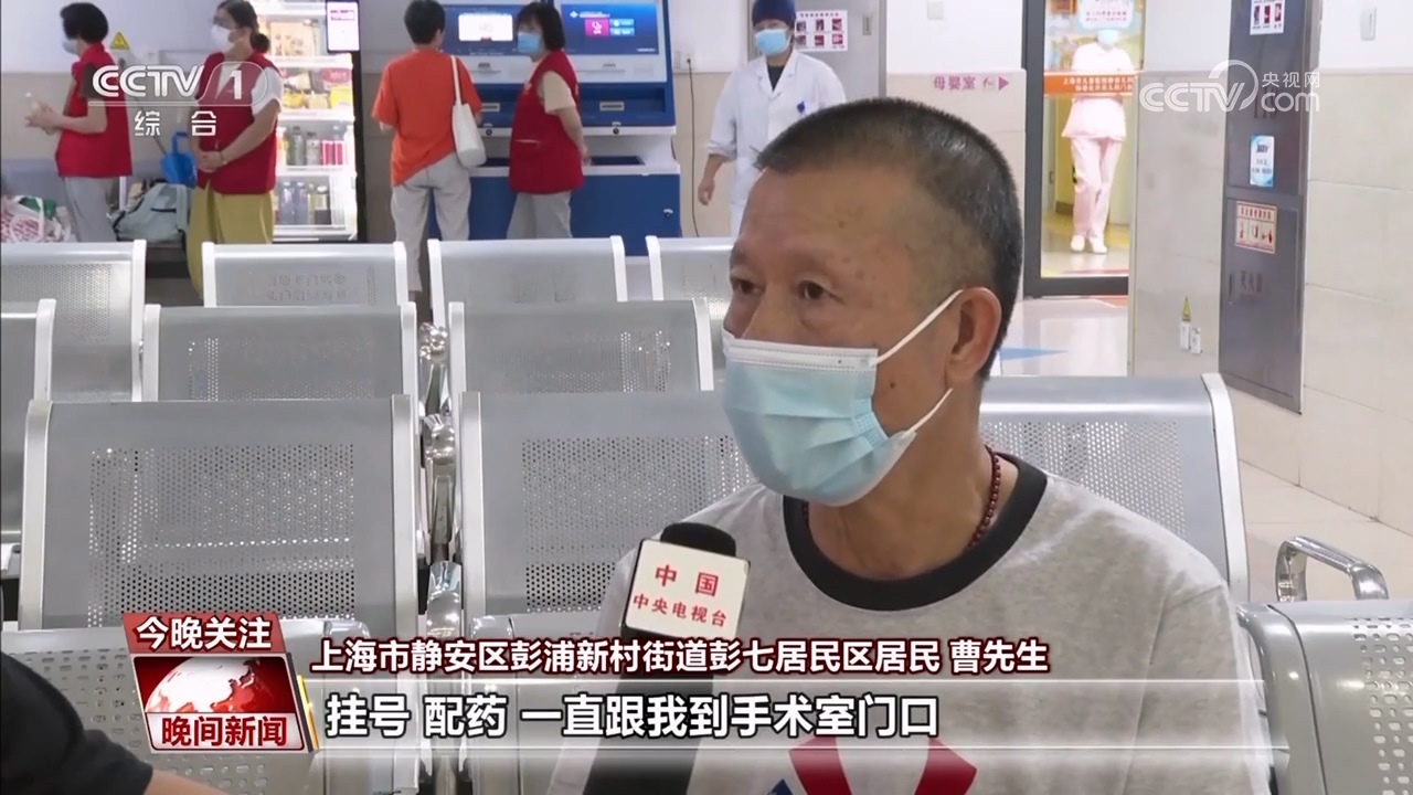上海市静安区彭浦新村街道彭七居民区居民 曹先生:挂号,配药,一直跟我到手术室门口,(术后)推着轮椅送我到病房,真的就像我自己的亲人一样在照顾我,从头到尾都(是)这样。