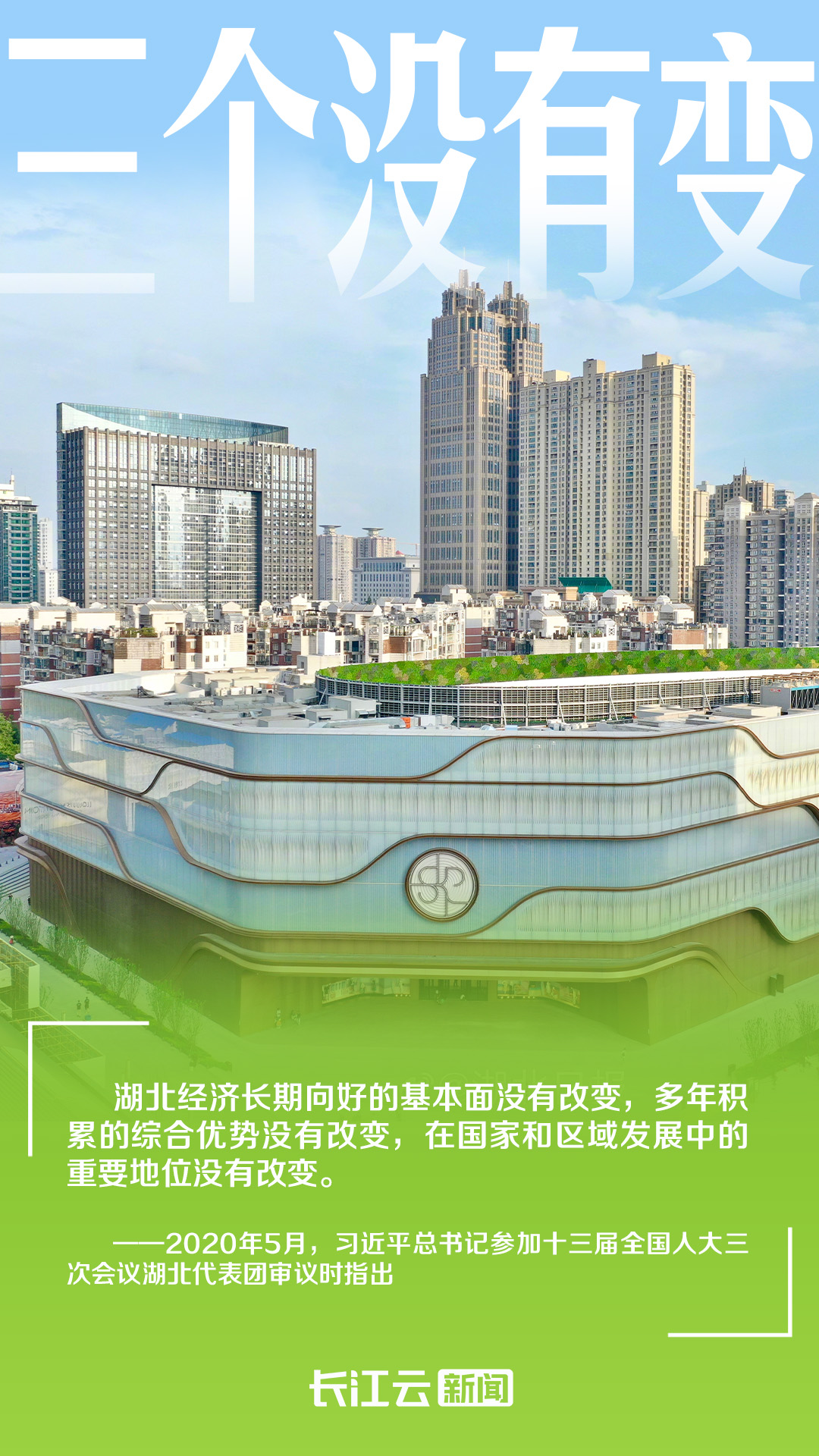 2020年5月,习近平总书记在全国两会期间参加湖北代表团审议,对湖北提出“三个没有改变”的重大判断,再次给湖北加油鼓劲。