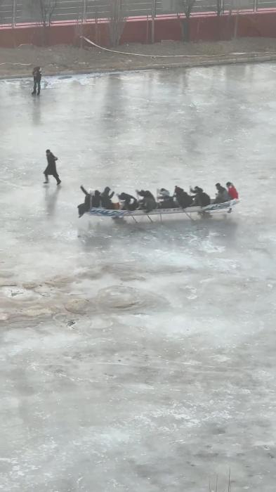 东北一高校有学生冰上划龙舟?网友调侃“北方人擅冰战”