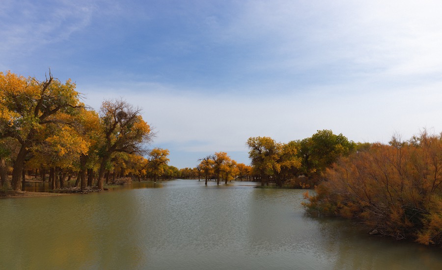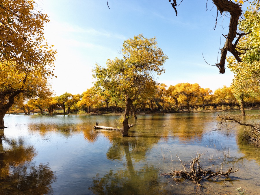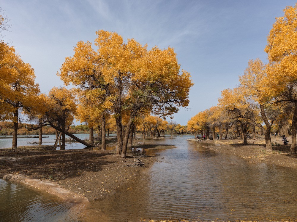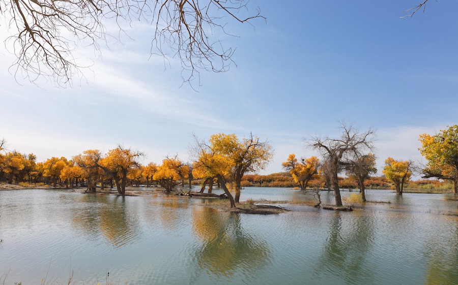 随着气温逐渐下降,胡杨叶陆续转黄,游客们被金色的胡杨林景观所震撼,摆起各种姿势拍照打卡,记录美好瞬间,尽情享受轻松愉悦的旅程。