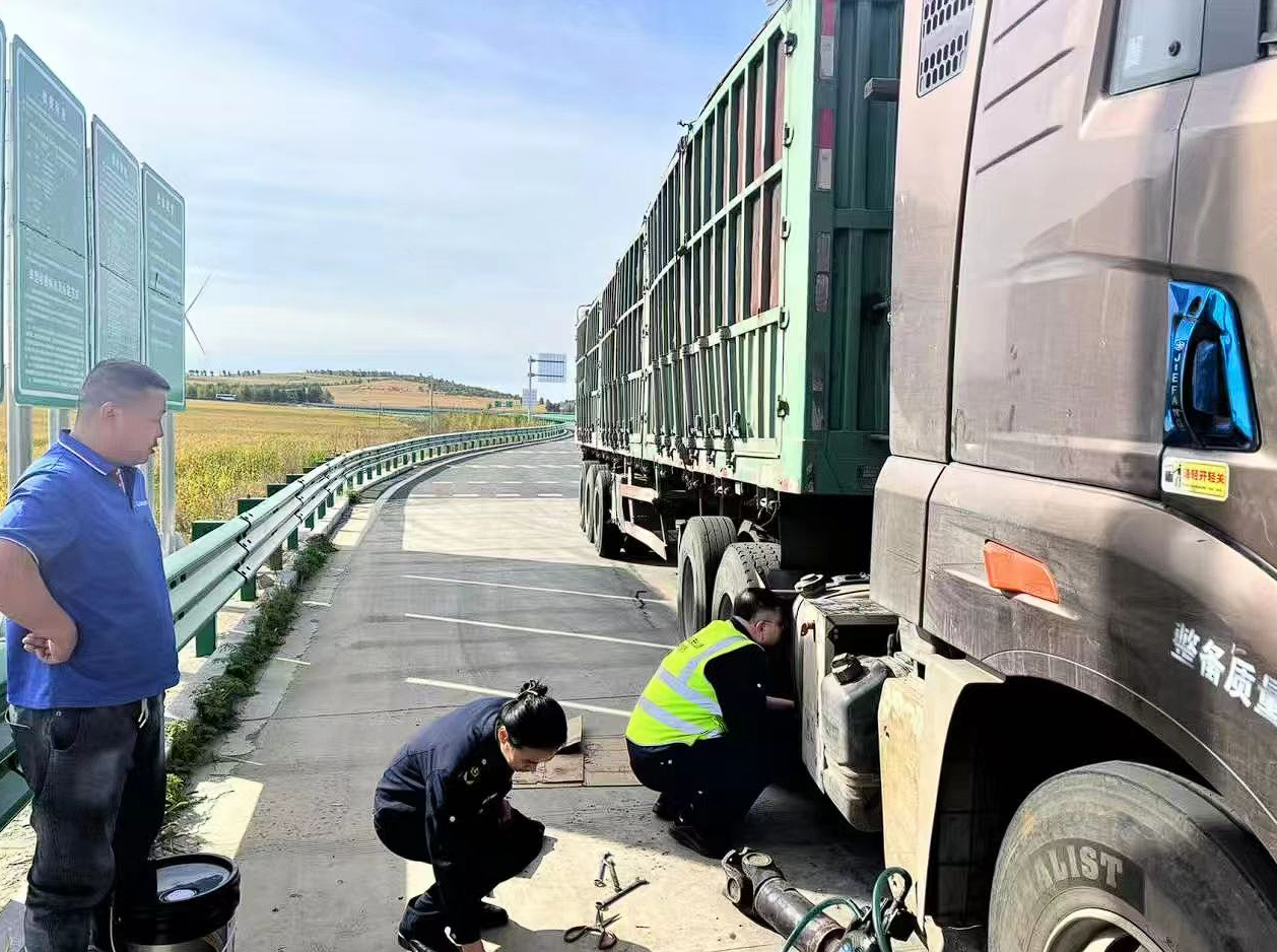 工作人员为大车司机提供帮助