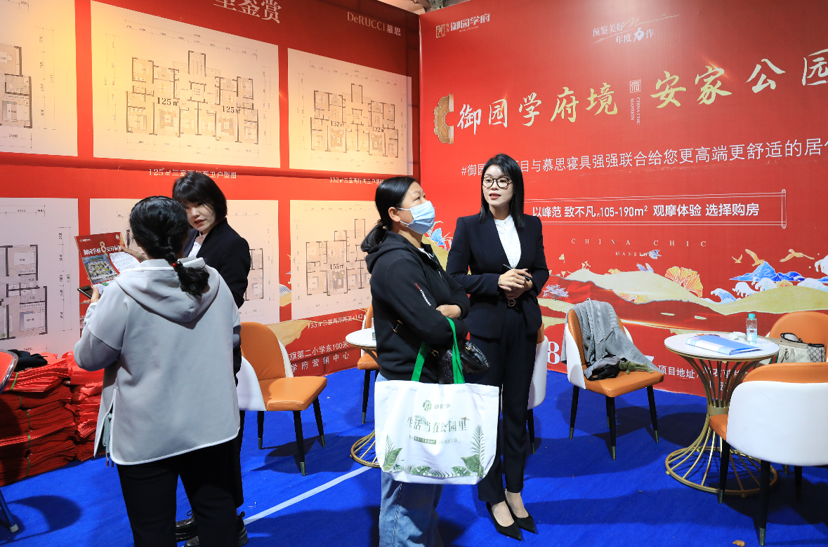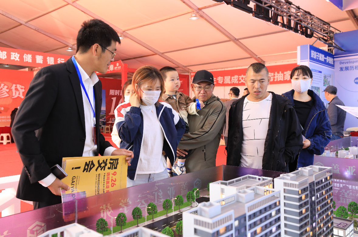 房产销售人员为市民讲解户型特点