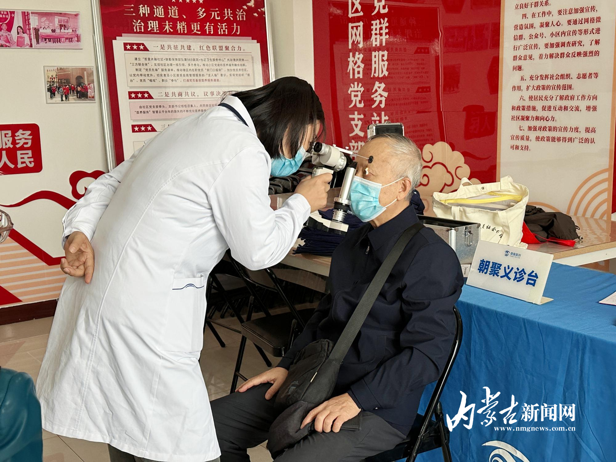 “医生,我最近看报纸总觉得字发虚,是不是白内障又加重了?”“您别着急,先坐好,我帮您仔细查查眼底。”10月10日上午,呼和浩特市新城区海拉尔路街道哲里木路社区戎辉小区活动室内暖意融融,医护人员正耐心地为居民做眼部检查。当日,哲理木路社区联合内蒙古朝聚眼科医院在这里开展眼科义诊活动。