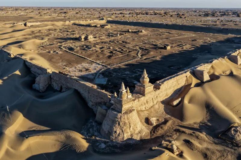黑水城遗址(无人机照片)。新华社记者 连振 摄