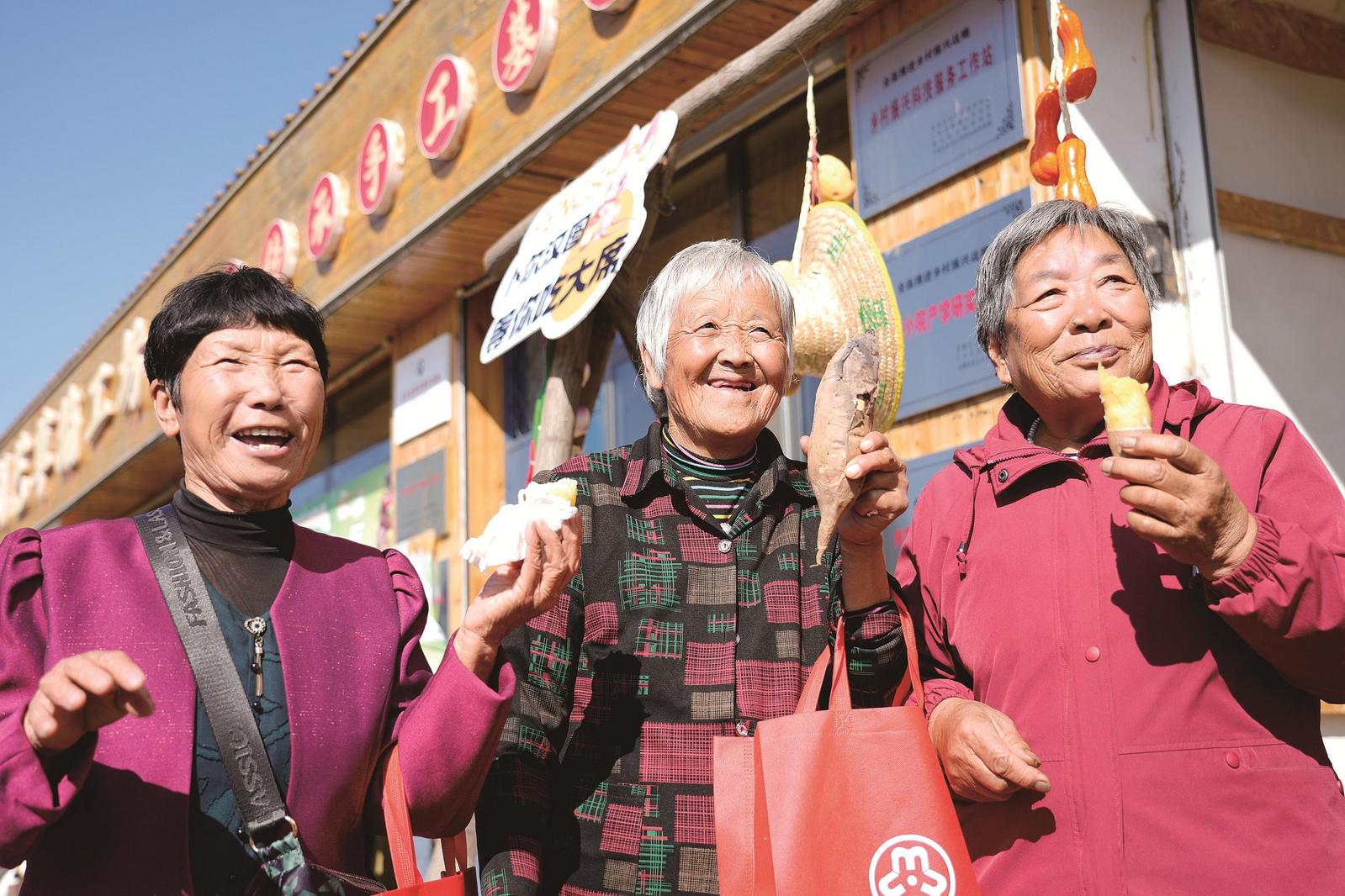 丰收节上,老人们笑容灿烂,捧着美食品尝,用欢颜诠释丰收的美好滋味。