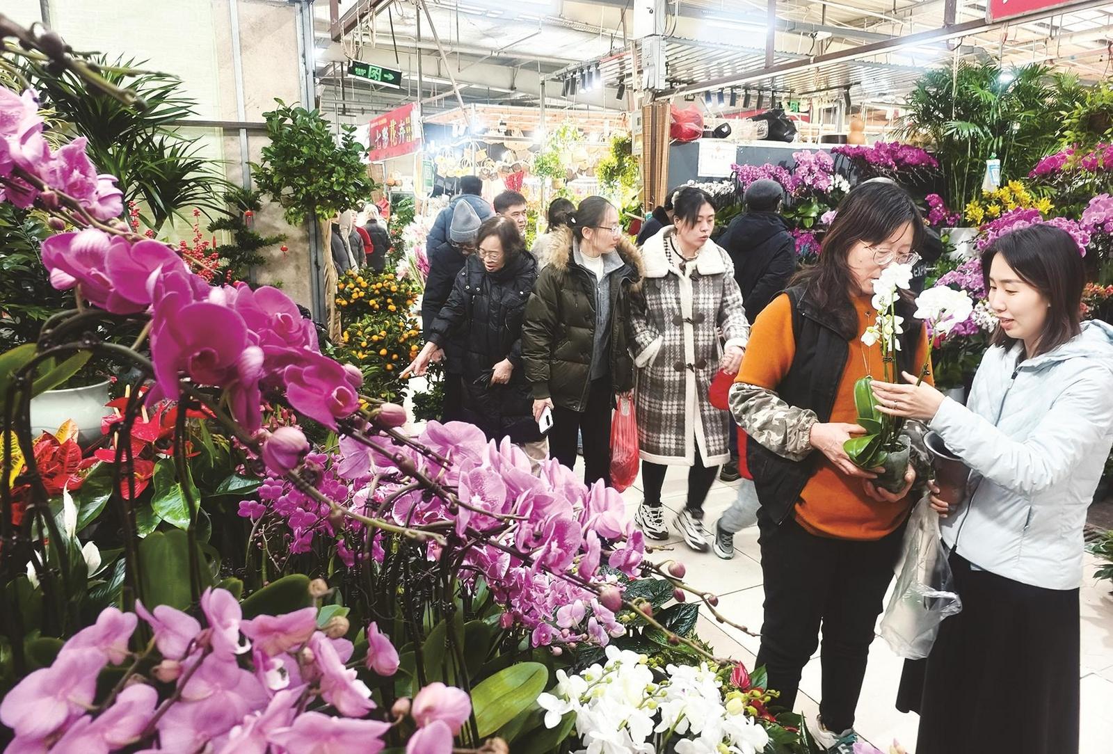 元旦假期,内蒙古包头市鲜花市场人气爆棚,各色鲜花争奇斗艳,市民们忙着选购鲜花装点新年,处处洋溢着喜庆的节日氛围。(宫伟恩)