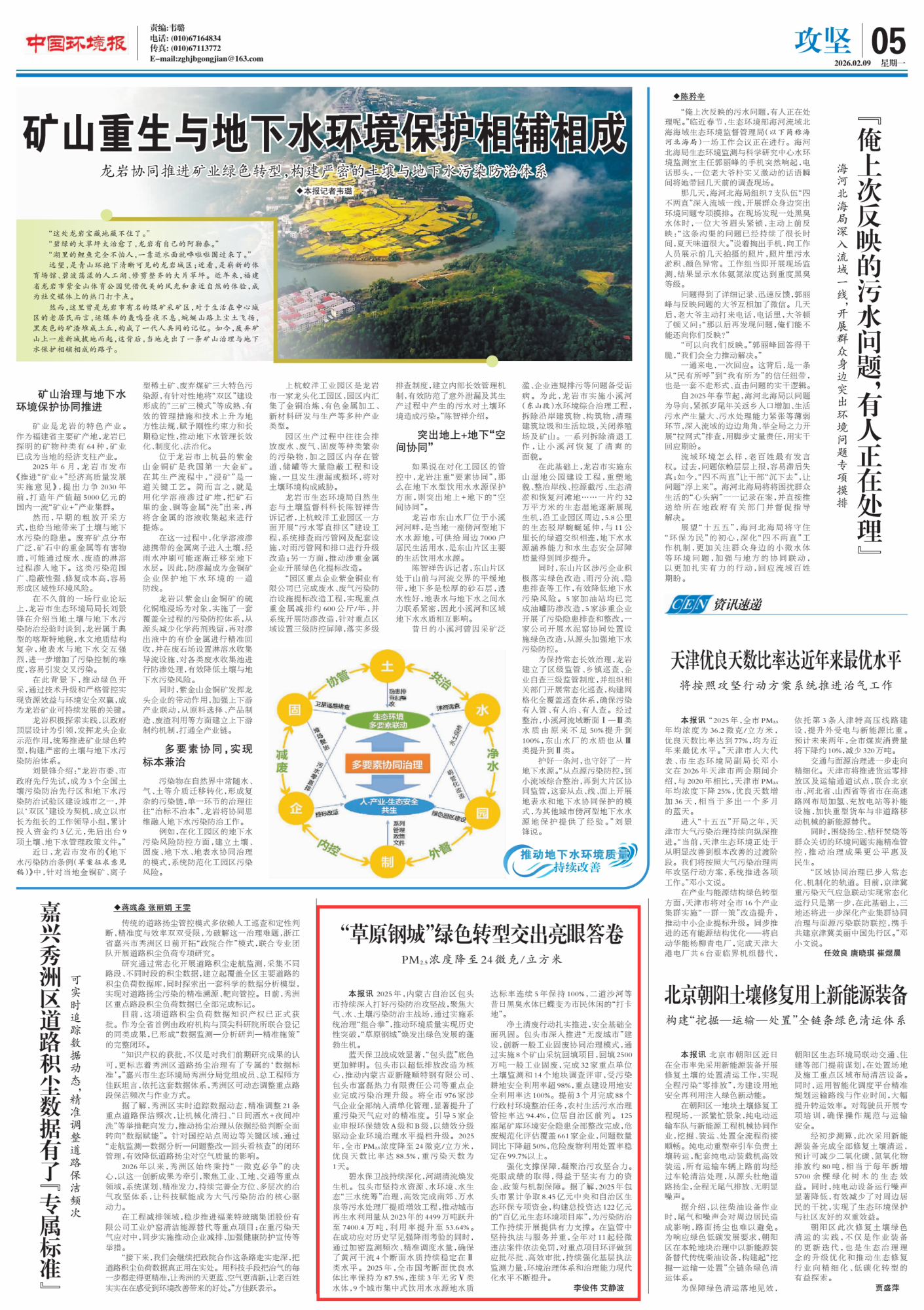 2026年2月9日,《中国环境报》第5版刊发题为《“草原钢城”绿色转型交出亮眼答卷 PM2.5浓度降至24微克/立方米》的文章,报道了2025年,内蒙古自治区包头市持续深入打好污染防治攻坚战,聚焦大气、水、土壤污染防治主战场,通过实施系统治理“组合拳”,推动环境质量实现历史性突破,“草原钢城”焕发出绿色发展的蓬勃生机。