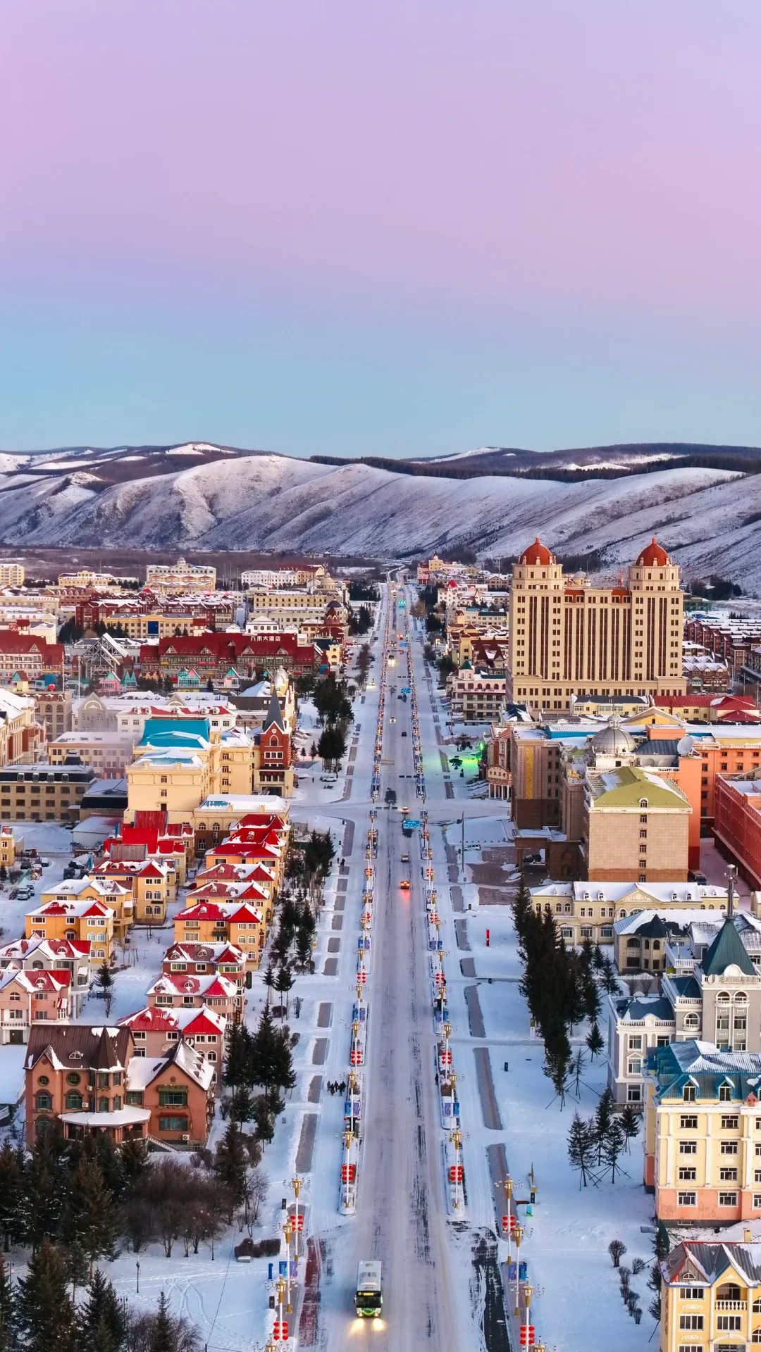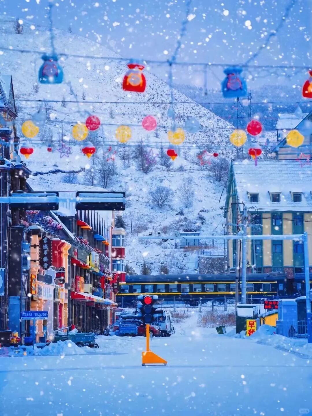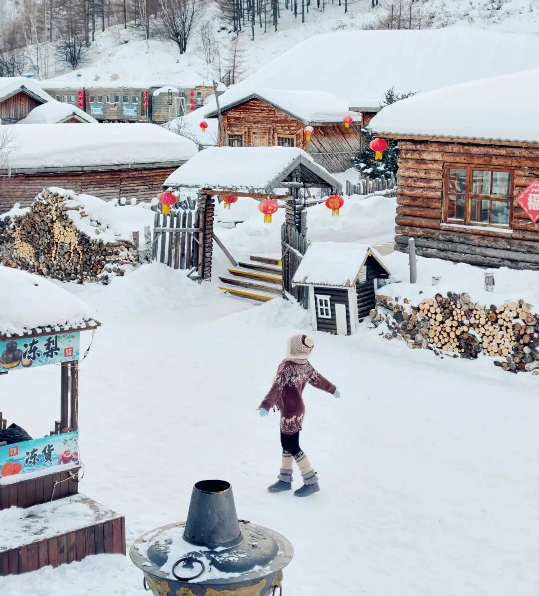 登上白狼峰观景台,俯瞰一望无际的林海雪原,夕阳西下时,整片雪原被染成温柔的金色,寒风掠过,雪花漫舞,这一刻的壮阔,足以治愈所有烦恼。走进阿尔山雪村,木刻楞房顶着圆滚滚的“雪蘑菇”,红灯笼在白雪中摇曳,晚上灯光一亮,暖黄色的光洒在雪上,感觉自己在童话里 。