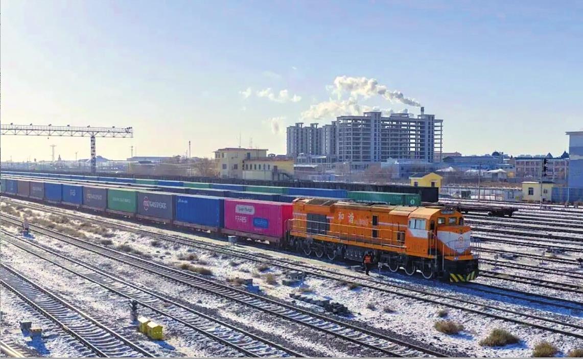近日,一列载有55个集装箱的中欧班列从二连浩特铁路口岸驶向欧洲。至此,经二连浩特铁路口岸通行的中欧班列累计货运量突破2500万吨大关。