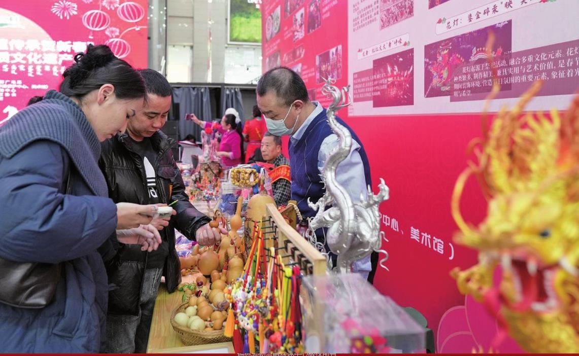 活动现场年味浓郁,非遗艺术品琳琅满目。从精雕细琢的铁编摆件到栩栩如生的“福禄”烙画,每一件都凝聚着匠人的匠心巧思与传统文化的深厚底蕴。人们穿梭其间挑选心仪年货,赞叹声、询价声、欢笑声交织,浓浓的年味与文化气息在市集里肆意流淌。