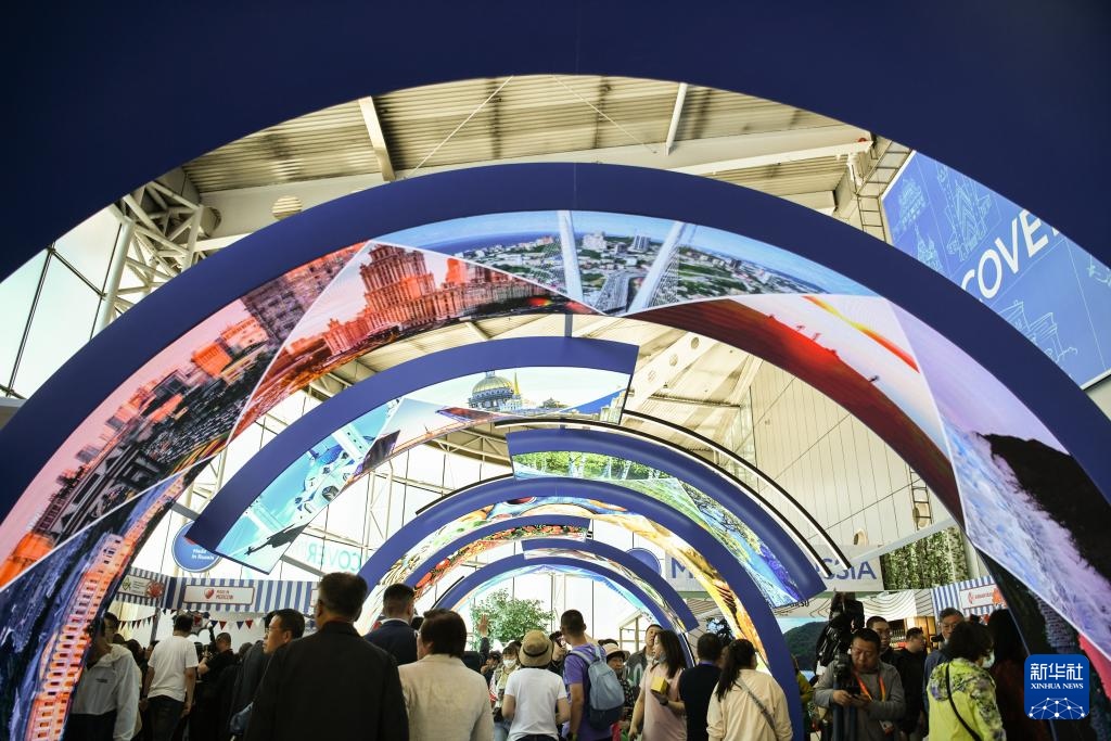5月18日,参会者走进在哈尔滨国际会展中心举行的第八届中俄博览会展馆。