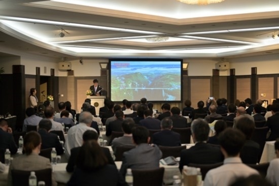 5月14日,张家界市委书记刘革安在推介会上致辞。(中国驻东京旅游办事处供图)