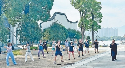中美青年共同练习太极拳。以上图片均为本报记者刘玲玲摄