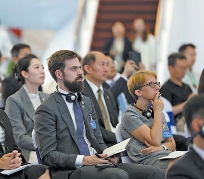 在中国船舶集团江南造船展示馆,一面照片墙展示了江南造船厂100多年来建造的优秀船舰的影像资料。边走边看边拍照,驻华使节从历史演变中了解中国近现代造船工业的发展历程,也更加直观地感受到当今中国造船工业的实力。“很高兴能够近距离感受全球最大的造船集团的魅力。中国造船工业发展势头强劲,给全球船舶市场和贸易航运带来积极影响。”加蓬驻华大使波德莱尔·恩东·埃拉表示。