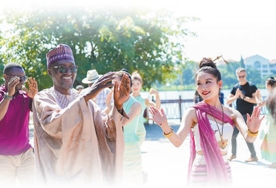 昆明滇池路七公里大转盘处,“民族大团结”雕塑引人注目,不远处便是云南民族村。造型各异的少数民族建筑、各具特色的民族服饰、热情洋溢的民族舞乐……加纳通讯社首席执行官阿尔贝特·科菲·奥乌苏加入人群,踩着鼓点起舞。他说:“在这里看到了丰富多彩的中国少数民族文化,我能感受到其中的生机与活力。”