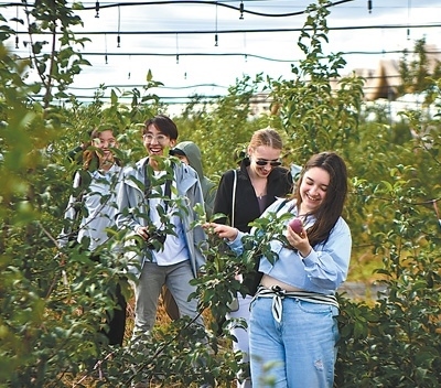 采矿不见矿,黄土披绿装。矿山复垦区的千亩林果示范园里,一片郁郁葱葱的果园映入眼帘,苹果、李子、梨、杏等果树枝叶繁茂,果实累累。品尝着甘甜的果实,北京石油化工学院乌兹别克斯坦留学生阿扎马特竖起了大拇指,并用标准的中文称赞道:“满分!”