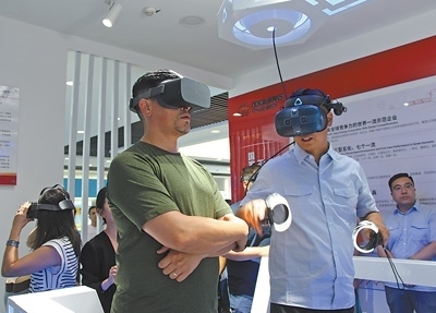 国际青年代表在玉门风电场VR电力安全生产实训室体验。 图为本报记者赵帅杰摄