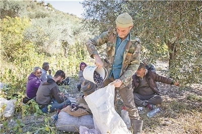 农户收集橄榄。