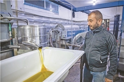 流水线上出产的橄榄油。本报记者 薛 丹摄影报道