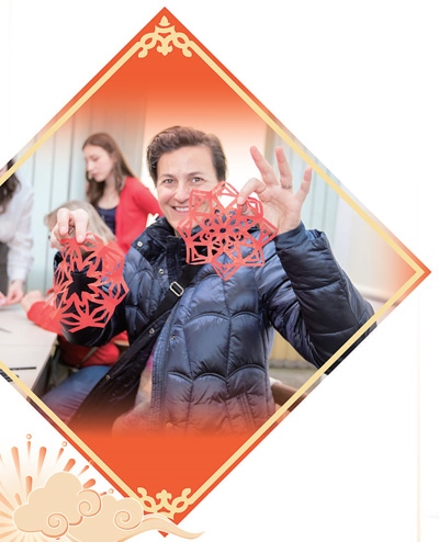 近日,2025“欢乐春节”新春游园会活动在保加利亚索非亚中国文化中心举行。图为当地民众体验中国剪纸艺术。