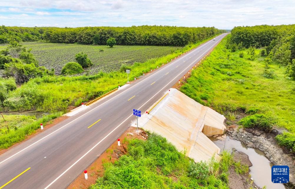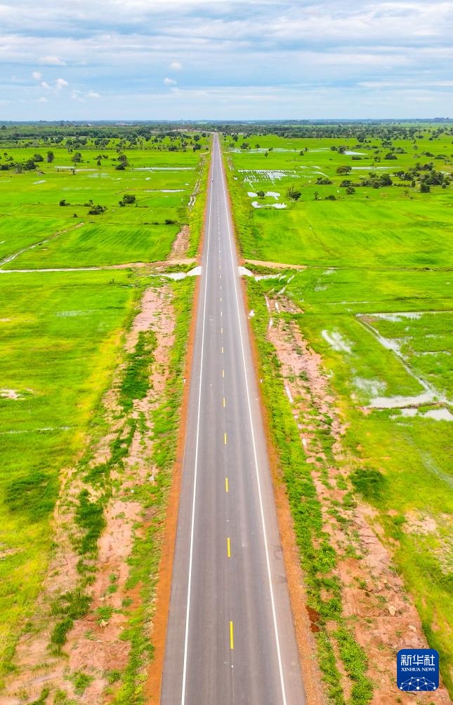 这是2024年7月14日在柬埔寨特本克蒙省拍摄的71C号国家公路(无人机照片)。新华社发(尼多拉摄)