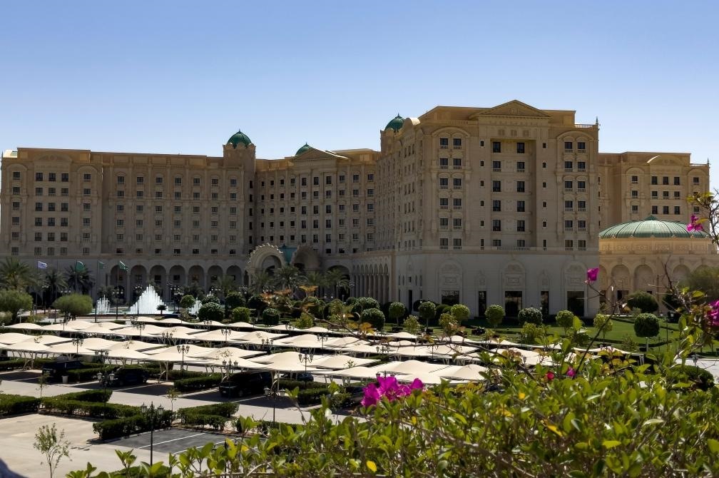 3月24日,美国和俄罗斯代表团在沙特阿拉伯首都利雅得举行会谈。图为美俄代表团举行会谈的酒店。新华社记者王东震摄