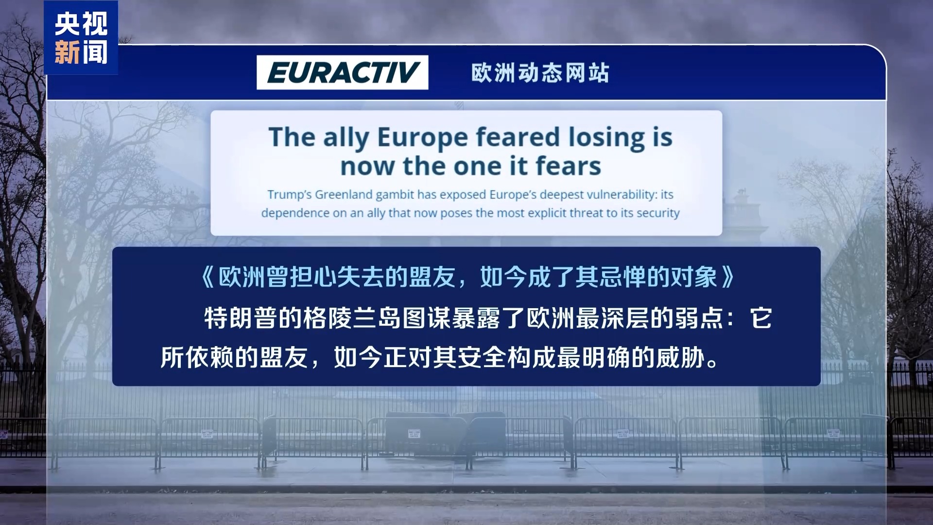 北京外国语大学欧盟与区域发展研究中心主任崔洪建就此分析认为,在当前美国威胁夺取格陵兰岛引发的美欧矛盾持续升温的当下,双方未来将进入激烈紧张博弈的阶段,而一旦美国真的动用了军事手段,这便意味着美欧之间盟友关系的终结。