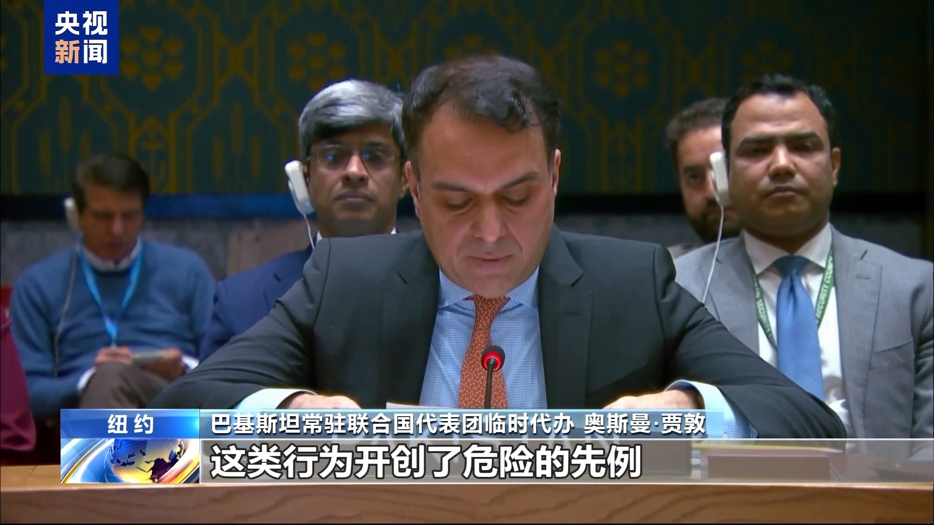 巴基斯坦常驻联合国代表团临时代办 奥斯曼·贾敦:这类行为开创了危险的先例,对全球法律框架的根基构成威胁。
