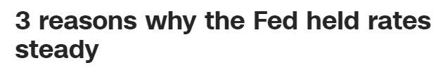 美国有线电视新闻网(CNN)报道指出,美联储的这一决定符合市场预期。报道分析了做出这一决定的三个原因: