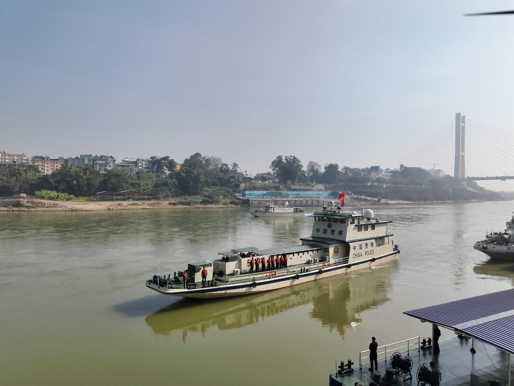 联合巡逻执法行动圆满结束,中方执法艇顺利返回,正在有序靠泊西双版纳景哈警务码头。(云南省公安厅水上巡逻总队供图)