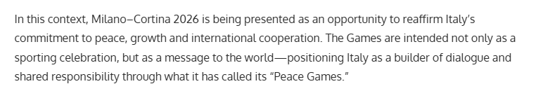 文章认为,2026年米兰-科尔蒂纳冬季奥运会举办的意义远不止于争夺金牌,还将有力推动全球旅游业复苏、促进和平理念传播,并通过体育运动将不同文化紧密连接。