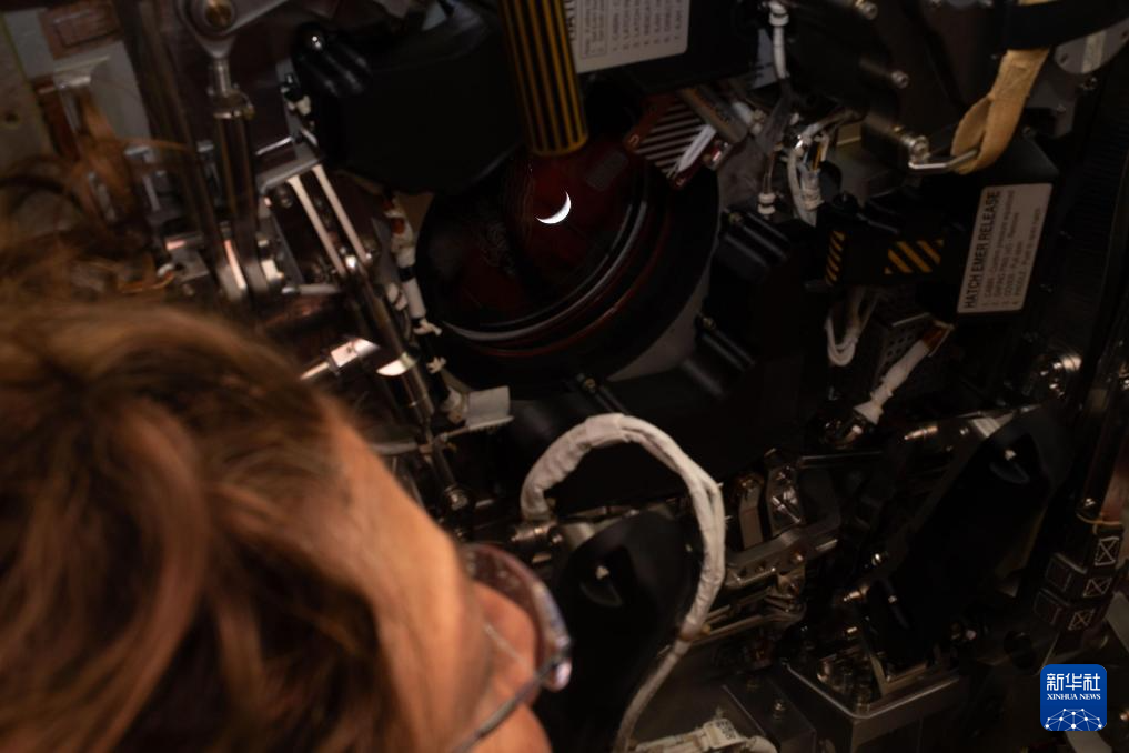 4月6日,美国航空航天局宇航员克里斯蒂娜·科克从执行“阿耳忒弥斯2号”载人绕月飞行任务的“猎户座”飞船上观看地球。新华社发(美国国家航空航天局供图)