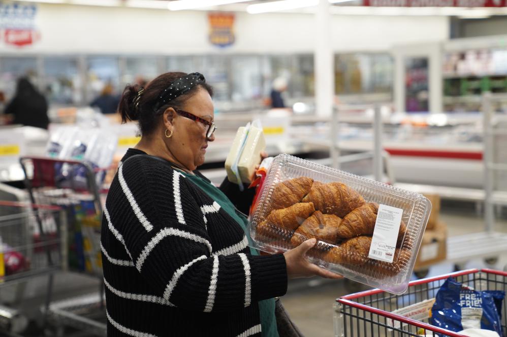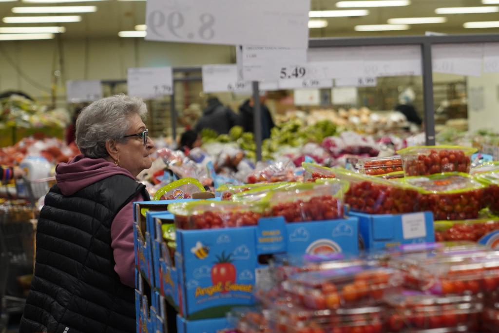 4月10日,一名女子在美国纽约一家超市选购食品。新华社记者 张凤国 摄
