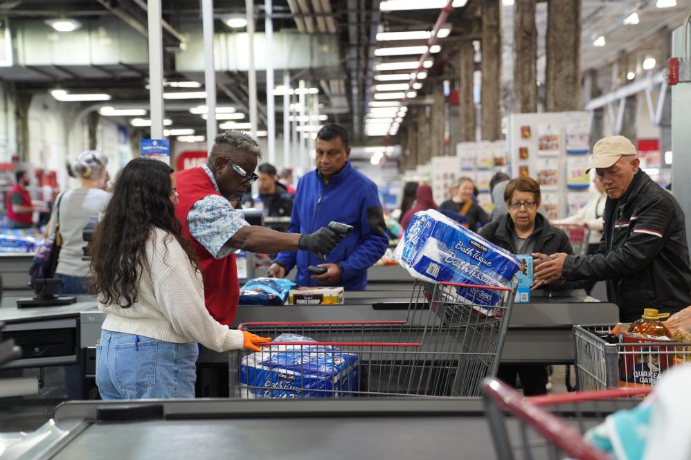 4月10日,市民在美国纽约一家超市购买生活用品。新华社记者 张凤国 摄