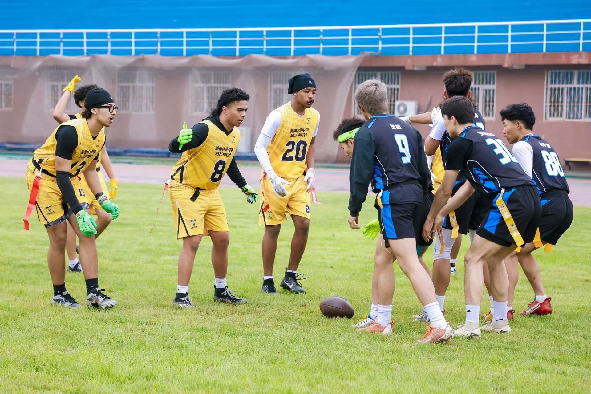 美国华盛顿州塔科马市林肯中学腰旗橄榄球队到访北京首都体育学院 与该校的腰旗橄榄球社团展开友谊赛