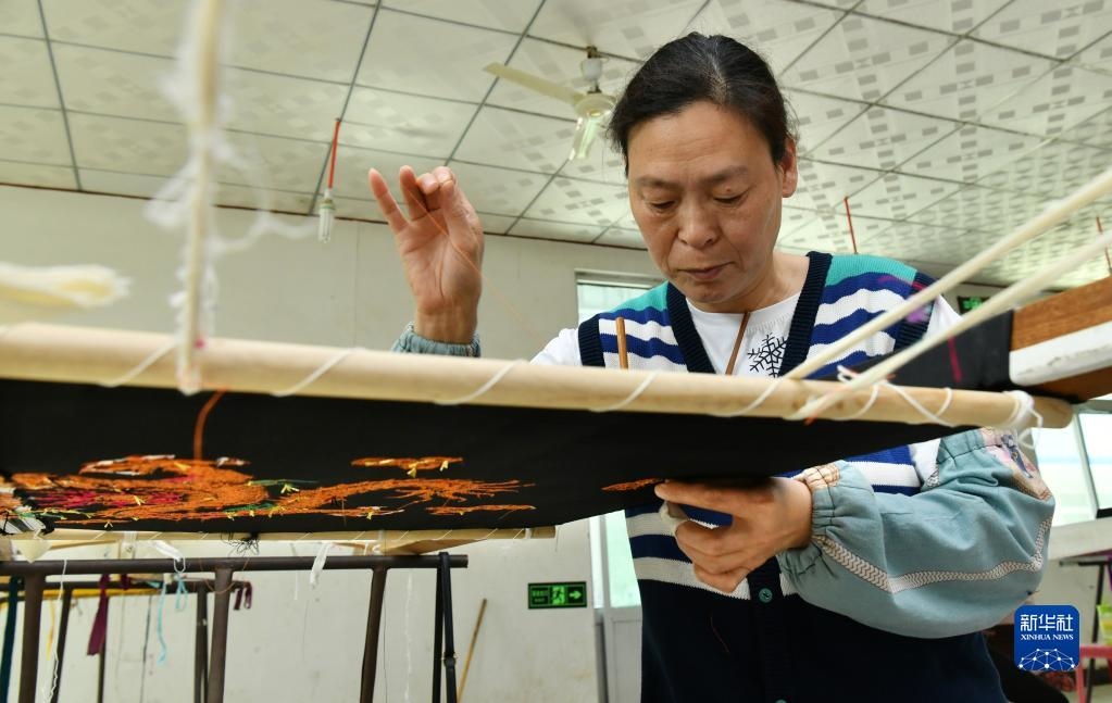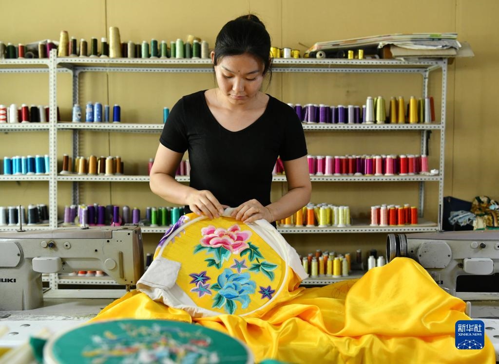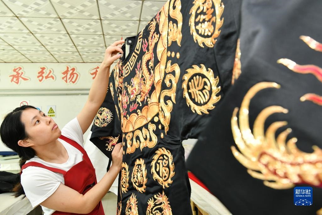 河北省肃宁县邵庄乡东高家口村的戏曲服装服饰制作技艺至今已传承百余年,2017年被列入沧州市市级非物质文化遗产名录。近年来,当地在推进产业富民的过程中,积极推进传统技艺与现代工业生产有机融合,成立、引进服装加工企业,为100多名当地留守妇女提供就业岗位,在促进居民增收的同时,推动了传统非遗的传承。新华社记者 牟宇 摄