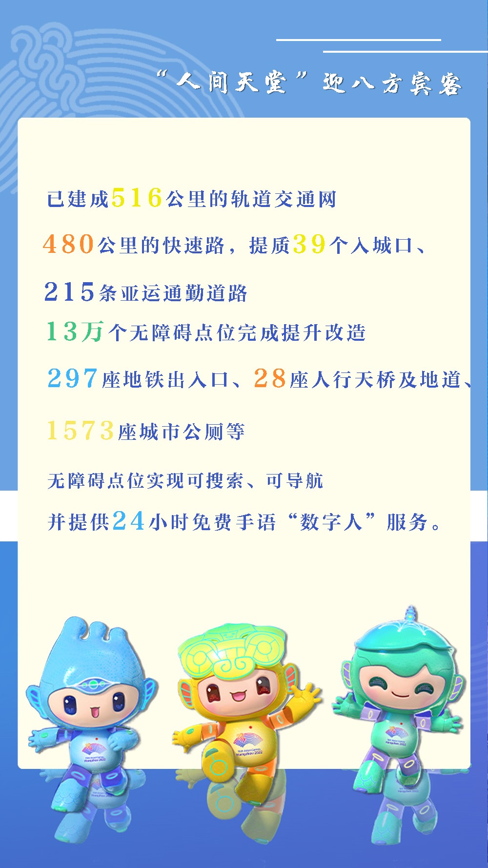 目前,杭州亚运会、亚残运会56个竞赛场馆、31个训练场馆已全部竣工,并完成赛事功能验收,亚运村和5个亚运分村准备就绪,具备入住条件。以周全准备回应热切期盼,用真挚笑脸迎接八方宾客。