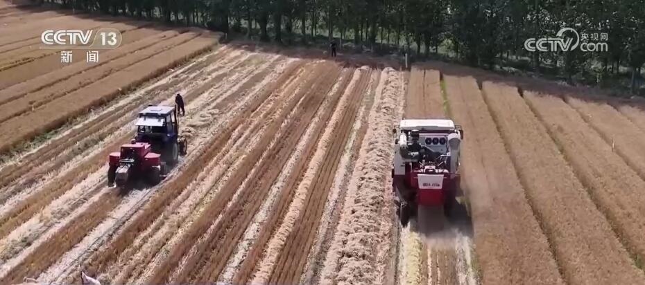 在河北省高碑店市辛桥镇的一处高标准农田,放眼望去,一片金黄。伴随着一台台大型收割机的轰鸣声,一簇簇麦穗被收入机仓。在收割的同时,小麦秸秆被就地粉碎还田,为后续粮食作物生长提供养分。