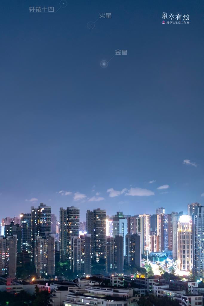 “当晚,虽然轩辕十四的亮度为1.35等,比微微泛红的火星还要明亮,但在光污染较为严重的城市,要想凭借肉眼看到它们并非易事,感兴趣且有条件的公众可借助小型天文望远镜观测;要想用肉眼看到‘高清版’,建议选择光污染较低的地方,如郊区、农村等地,更利于观测和拍照。”赖迪辉提醒说。