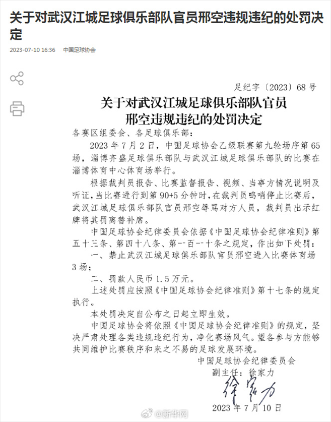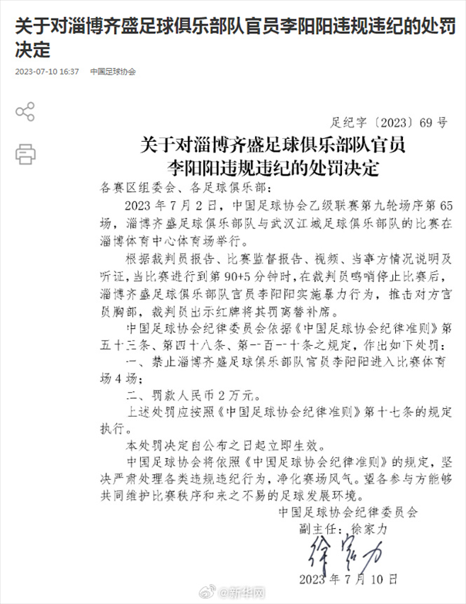 ·中国足协再开罚单,两名俱乐部官员因违规违纪被罚。