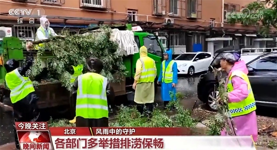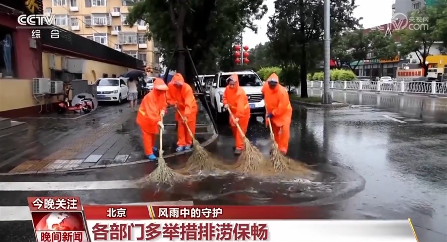 为应对今年以来北京最强降雨天气,在顺义,巡查人员雨中对管养范围内积水点、路树、桥梁等重点部位不间断巡视;昌平公路分局在山区公路地质灾害易发路段设置值守点;怀柔区环卫公司紧急成立防汛应急小组,对道路积水开展人工推水作业,捡拾雨箅子上的杂物和树叶,方便市民出行。