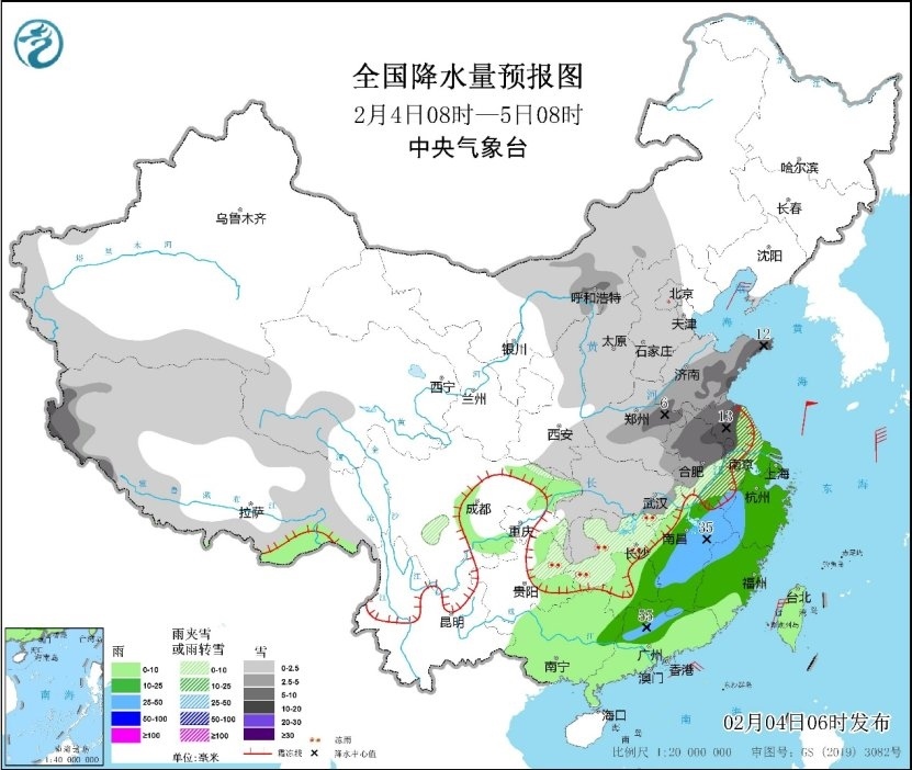 央视网消息:据中央气象台网站消息,昨日(2月3日),内蒙古西部、甘肃中部、陕西中部、山西南部、河南中南部、安徽北部、江苏北部、湖北中北部等地部分地区出现小到中雪,河南东南部、湖北中部等地局地大雪或暴雪;安徽中部、江苏中部、湖北东部、湖南中北部、贵州东北部降雪或雨夹雪5~15毫米,局地降水量20~52毫米;贵州东部、湖南北部、湖北东部、安徽北部等地出现冻雨。